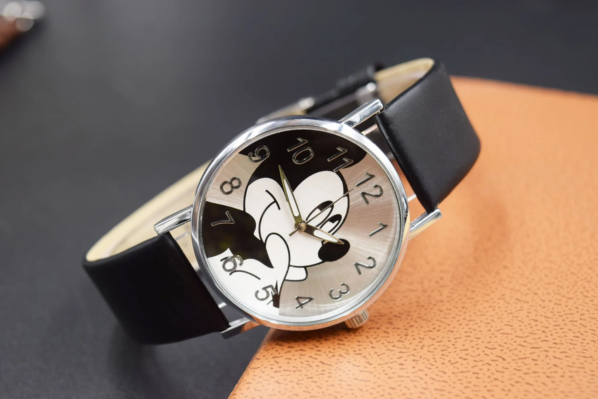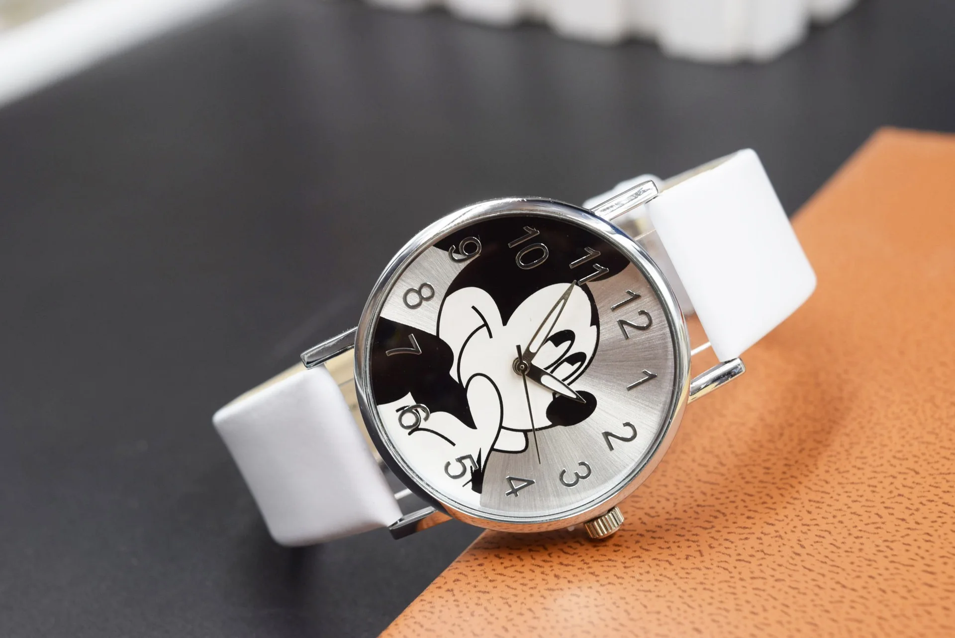 Disney Mickey Women Watches For lady Leather Strap Ladies Quartz Clock Student Watch For boy girl birthday gift