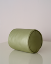 The image shows the cylinder cushion in faux leather "Laser Eco Metallic - Jadeite"