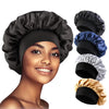 Women's Satin Solid Bonnets Wide-brimmed Night Sleeping Bathing Hat Unisex Head Wrap Elastic Band Cap Hair Care Bonnet